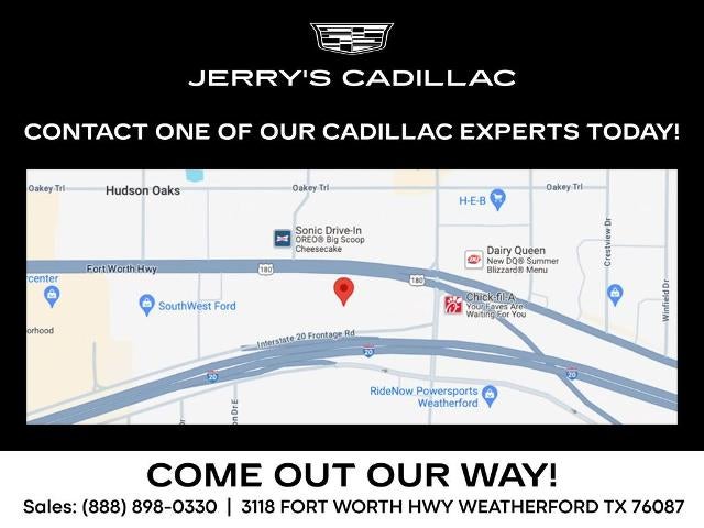 This vehicle is located at JERRY'S GM PRE-OWNED! Our address is 3131 FORT WORTH HIGHWAY WEATHERFORD TEXAS, 76087. Our phone number is (682) 332-4588. For more information, please contact one of our Internet Managers or stop by our dealership and speak to one of our sales professionals. At Jerry's GM Pre-Owned all of our vehicles go through an extensive safety and multi-point inspection, prior to delivery. Buy with confidence! At Jerry's GM Preowned we offer fair, honest, competitive, and transparent pricing with no added addendums or market adjustments as many of our competitors do. We strive to offer high quality vehicles at great prices with an enjoyable experience. For over 50 years we have served our customers with pride and look forward to earning your business!